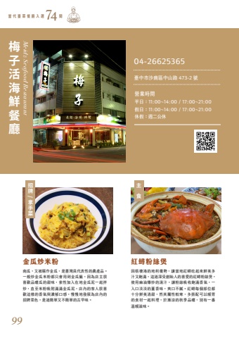 %u56e0%u68a7%u68f2%u6e2f%u7684%u5730%u5229%u512a%u52e2%uff0c%u8b93%u7576%u5730%u7d05%u87f3%u5403%u8d77%u4f86%u9bae%u7f8e%u591a%u6c41%u53c8%u98fd%u6eff%uff0c%u9019%u9053%u6df1%u53d7%u5275%u59cb%u4eba%u7684%u559c%u611b%u7684%u7d05%u87f3%u7c89%u7d72%u7172%uff0c%u4f7f%u7528%u9ebb%u6cb9%u7206%u7092%u7684%u6e6f%u6c41%uff0c%u8b93%u7c89%u7d72%u5438%u6536%u98fd%u6eff%u9999%u6c23%uff0c%u4e00%u5165%u53e3%u6de1%u6de1%u7684%u8591%u9999%u5473%uff0c%u723d%u53e3%u4e0d%u81a9%u3002%u7d05%u87f3%u6bcf%u500b%u90e8%u4f4d%u90fd%u5341%u5206%u9bae%u7f8e%u6e05%u751c%uff0c%u7136%u5176%u5c6c%u6027%u8f03%u5bd2%uff0c%u591a%u642d%u914d%u53ef%u4ee5%u6696%u80c3%u7684%u98df%u6750%u4e00%u8d77%u6599%u7406%uff0c%u65bc%u6f38%u6dbc%u7684%u79cb%u5b63%u54c1%u5690%uff0c%u5225%u6709%u4e00%u756a%u6eab%u6696%u6ecb%u5473%u3002%u5357%u74dc%uff0c%u53c8%u88ab%u7a31%u4f5c%u91d1%u74dc%uff0c%u662f%u81fa%u7063%u5177%u4ee3%u8868%u6027%u7684%u8fb2%u7522%u54c1%u3002%u4e00%u822c%u7092%u91d1%u74dc%u7c73%u7c89%u90fd%u53ea%u6703%u7528%u5230%u91d1%u74dc%u7c64%uff0c%u56e0%u70ba%u5e97%u4e3b%u5f88%u559c%u6b61%u54c1%u5690%u74dc%u7684%u751c%u5473%uff0c%u7d22%u6027%u52a0%u5165%u5728%u5730%u91d1%u74dc%u6ce5%u4e00%u8d77%u62cc%u7092%uff0c%u76f4%u81f3%u7c73%u7c89%u5438%u9644%u6eff%u6eff%u91d1%u74dc%u6ce5%uff0c%u5e97%u5167%u7684%u5ba2%u4eba%u5f88%u559c%u6b61%u9019%u6a23%u7684%u9999%u6c23%u8207%u6fc3%u90c1%u53e3%u611f%uff0c%u6162%u6162%u5730%u767c%u5c55%u70ba%u5e97%u5167%u7684%u62db%u724c%u83dc%u8272%uff0c%u662f%u9053%u7c21%u55ae%u53c8%u4e0d%u7c21%u55ae%u7684%u53e4%u65e9%u5473%u3002%u91d1%u74dc%u7092%u7c73%u7c89 %u7d05%u87f3%u7c89%u7d72%u7172 Meidz Seafood Restaurant%u62db%u724c/%u62ff%u624b%u83dc%u4e3b%u98df%u6885%u5b50%u6d3b%u6d77%u9bae%u9910%u5ef3%u7576 %u4ee3 %u81fa %u83dc %u9910 %u5ef3 %u5165 %u9078 %u959304-26625365%u71df%u696d%u6642%u9593%u4f11%u5047%uff1a%u9031%u4e8c%u516c%u4f11%u5047%u65e5%uff1a11:00~14:00 / 17:00~21:00%u81fa%u4e2d%u5e02%u6c99%u9e7f%u5340%u4e2d%u5c71%u8def 473-2 %u865f74%u5e73%u65e5%uff1a11:00~14:00 / 17:00~21:0099