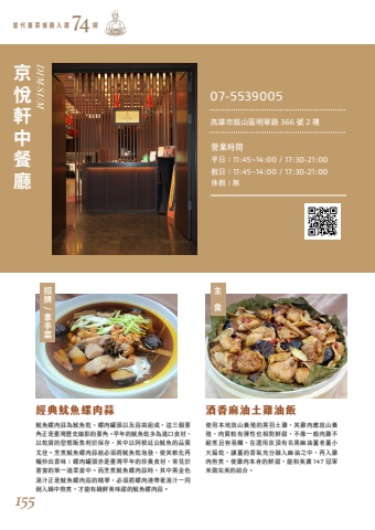 %u4f7f%u7528%u672c%u5730%u653e%u5c71%u990a%u6b96%u7684%u9ed1%u7fbd%u571f%u96de%uff0c%u5176%u96de%u8089%u61c9%u653e%u5c71%u990a%u6b96%uff0c%u8089%u8cea%u8f03%u6709%u5f48%u6027%u4e5f%u76f8%u5c0d%u9bae%u751c%uff0c%u4e0d%u50cf%u4e00%u822c%u8089%u96de%u4e0d%u8010%u716e%u4e14%u5bb9%u6613%u721b%uff0c%u5728%u9078%u7528%u5d01%u9802%u6709%u540d%u9ed1%u9ebb%u6cb9%u8591%u8001%u8591%u5c0f%u706b%u6241%u4e7e%uff0c%u8b93%u8591%u7684%u9999%u6c23%u5145%u5206%u878d%u5165%u9ebb%u6cb9%u4e4b%u4e2d%uff0c%u518d%u5165%u96de%u8089%u714e%u716e%uff0c%u4f7f%u96de%u8089%u672c%u8eab%u7684%u9bae%u751c%uff0c%u80fd%u548c%u7f8e%u6fc3 147 %u51a0%u8ecd%u7c73%u505a%u5b8c%u7f8e%u7684%u7d50%u5408%u3002%u9b77%u9b5a%u87ba%u8089%u849c%u70ba%u9b77%u9b5a%u4e7e%u3001%u87ba%u8089%u7f50%u982d%u4ee5%u53ca%u849c%u82d7%u7d44%u6210%uff0c%u9019%u4e09%u500b%u8981%u89d2%u6b63%u662f%u81fa%u7063%u6b77%u53f2%u7e2e%u5f71%u7684%u8981%u89d2%u3002%u65e9%u5e74%u7684%u9b77%u9b5a%u4e7e%u591a%u70ba%u9032%u53e3%u98df%u6750%uff0c%u4ee5%u4e7e%u8ca8%u7684%u578b%u614b%u8ca9%u552e%u5229%u65bc%u4fdd%u5b58%uff0c%u5176%u4e2d%u4ee5%u963f%u6839%u5ef7%u516c%u9b77%u9b5a%u7684%u54c1%u8cea%u5c24%u4f73%u3002%u70f9%u716e%u9b77%u9b5a%u87ba%u8089%u849c%u524d%u5fc5%u9808%u5c07%u9b77%u9b5a%u4e7e%u6ce1%u767c%uff0c%u4f7f%u5176%u8edf%u5316%u518d%u7178%u7092%u51fa%u9999%u5473%uff1b%u87ba%u8089%u7f50%u982d%u4ea6%u662f%u81fa%u7063%u65e9%u5e74%u7684%u73cd%u8cb4%u98df%u6750%uff0c%u5e38%u898b%u65bc%u559c%u5bb4%u7684%u7b2c%u4e00%u9053%u83dc%u7576%u4e2d%u3002%u800c%u70f9%u716e%u9b77%u9b5a%u87ba%u8089%u849c%u6642%uff0c%u5176%u4e2d%u9ed1%u91d1%u8272%u6e6f%u6c41%u6b63%u662f%u9b77%u9b5a%u87ba%u8089%u849c%u7684%u7cbe%u83ef%uff0c%u5fc5%u9808%u5c07%u87ba%u8089%u9023%u5e36%u8457%u6e6f%u6c41%u4e00%u540c%u5012%u5165%u934b%u4e2d%u71ac%u716e%uff0c%u624d%u80fd%u6709%u934b%u9bae%u7f8e%u5473%u751c%u7684%u9b77%u9b5a%u87ba%u8089%u849c%u3002%u7d93%u5178%u9b77%u9b5a%u87ba%u8089%u849c %u9152%u9999%u9ebb%u6cb9%u571f%u96de%u6cb9%u98ef DIM-SUM%u62db%u724c/%u62ff%u624b%u83dc%u4e3b%u98df%u4eac%u6085%u8ed2%u4e2d%u9910%u5ef3%u7576 %u4ee3 %u81fa %u83dc %u9910 %u5ef3 %u5165 %u9078 %u9593 7407-5539005%u71df%u696d%u6642%u9593%u4f11%u5047%uff1a%u7121%u5047%u65e5%uff1a11:45~14:00 / 17:30-21:00%u9ad8%u96c4%u5e02%u9f13%u5c71%u5340%u660e%u83ef%u8def 366 %u865f 2 %u6a13%u5e73%u65e5%uff1a11:45~14:00 / 17:30-21:00155