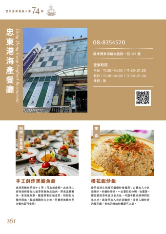 %u4f7f%u7528%u6771%u6e2f%u5728%u5730%u6afb%u82b1%u8766%u7206%u7092%u5f8c%u5099%u7528%uff1b%u767d%u98ef%u52a0%u5165%u5c11%u8a31%u6cb9%u62cc%u7092%uff0c%u7092%u98ef%u7092%u5f97%u597d%uff0c%u4e00%u5b9a%u8981%u7c92%u7c92%u5206%u660e%uff0c%u5305%u8986%u8525%u3001%u6afb%u82b1%u8766%u7684%u9999%u5473%u4e14%u6cdb%u91d1%u5149%u8272%uff0c%u53ef%u8b02%u8003%u9a57%u8001%u5e2b%u5085%u5011%u7684%u57fa%u672c%u529f%u3002%u6700%u5f8c%u518d%u52a0%u5165%u4e9b%u8a31%u80e1%u6912%u7c89%uff0c%u4e26%u5012%u5165%u7206%u7092%u597d%u7684%u6afb%u82b1%u8766%uff0c%u7f8e%u5473%u7684%u50b3%u7d71%u7092%u98ef%u5373%u53ef%u4e0a%u684c%u3002%u6771%u6e2f%u9ed1%u9baa%u9b5a%u5b63%u6bcf%u5e74 5 %u81f3 7 %u6708%u70ba%u76db%u7522%u671f%u3002%u5fe0%u6771%u6e2f%u4e3b%u5eda%u7279%u5225%u7814%u767c%u52a0%u5165%u7576%u5b63%u9ed1%u9baa%u9b5a%u76ae%u6cb9%u8089%u3001%u5c4f%u6771%u6eab%u9ad4%u8c6c%u8089%u3001%u6771%u6e2f%u65d7%u9b5a%u6f3f%u3001%u56b4%u9078%u5c4f%u6771%u5728%u5730%u97ed%u83dc%uff0c%u7279%u88fd%u914d%u65b9%u652a%u62cc%u800c%u6210%u3002%u88fd%u6210%u6a62%u5713%u5f62%u5927%u5c0f%u5f8c%uff0c%u518d%u88f9%u7c89%u5f8c%u9165%u70b8%u81f3%u91d1%u9ec3%u8272%u5373%u53ef%u98df%u7528%uff01%u624b%u5de5%u9165%u70b8%u9ed1%u9baa%u9b5a%u9905 %u6afb%u82b1%u8766%u7092%u98ef Tiong Dong Gang Seafood Restaurant%u62db%u724c/%u62ff%u624b%u83dc%u4e3b%u98df%u5fe0%u6771%u6e2f%u6d77%u7522%u9910%u5ef3%u7576 %u4ee3 %u81fa %u83dc %u9910 %u5ef3 %u5165 %u9078 %u9593 7408-8354520%u71df%u696d%u6642%u9593%u4f11%u5047%uff1a%u7121%u5047%u65e5%uff1a11:30~14:00 / 17:30~21:30%u5c4f%u6771%u7e23%u6771%u6e2f%u93ae%u5149%u5fa9%u8def%u4e00%u6bb5 312 %u865f%u5e73%u65e5%uff1a11:30~14:00 / 17:30~21:30161