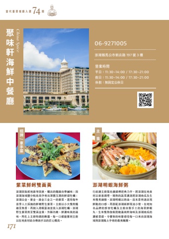 %u884c%u653f%u7e3d%u4e3b%u5eda%u8449%u5c1a%u5ee3%u5e2b%u5085%u7d93%u5178%u529b%u4f5c%uff0c%u5c07%u6f8e%u6e56%u5728%u5730%u98df%u6750%u4ee5%u65b0%u610f%u8abf%u7406%uff0c%u7cbe%u71ac%u7684%u852c%u83dc%u6fc3%u6e6f%u5c07%u6f8e%u6e56%u5357%u74dc%u53ca%u751f%u7c73%u6162%u716e%u7d30%u71c9%uff0c%u6f8e%u6e56%u660e%u8766%u4ee5%u5976%u6cb9%u3001%u849c%u672b%u9999%u714e%u904e%u5448%u73fe%u9bae%u8106%u7684%u53e3%u611f%u3001%u518d%u642d%u914d%u6f8e%u6e56%u65b0%u9bae%u73fe%u6d41%u5c0f%u7ba1%u3001%u5728%u5730%u77e5%u540d%u54c1%u724c%u7684%u90ed%u5bb6%u7261%u8823%u53ca%u4e3b%u5eda%u81ea%u88fd%u624b%u5de5%u7684%u6d77%u83dc%u9bae%u8766%u4e38%uff0c%u751f%u7c73%u6162%u71ac%u5f8c%u5438%u9644%u98fd%u6eff%u7d14%u7cb9%u6d77%u5473%u53ca%u6f8e%u6e56%u5357%u74dc%u7684%u6fc3%u90c1%u9999%u751c%uff0c%u4ee4%u9955%u5ba2%u7684%u5473%u857e%u611f%u53d7%u6bcf%u4e00%u53e3%u4f86%u81ea%u6f8e%u6e56%u6d77%u57df%u8207%u6f8e%u6e56%u98a8%u571f%u5b55%u80b2%u7684%u6700%u7f8e%u993d%u8d08%u3002%u6f8e%u6e56%u56e0%u6c23%u5019%u5730%u7de3%u7b49%u56e0%u7d20%uff0c%u66ec%u51fa%u7684%u9eb5%u7dda%u81ea%u5e36%u9e79%u5473%uff1b%u56e0%u6f8e%u6e56%u6d77%u57df%u9e7d%u5206%u8f03%u9ad8%u800c%u5b55%u80b2%u51fa%u6e3e%u5713%u7389%u6f64%u7684%u9bae%u751c%u7261%u8823%uff1b%u6f8e%u6e56%u767d%u91d1%u3001%u7d2b%u91d1%u3001%u7da0%u91d1%u4e09%u91d1%u4e4b%u4e00%u7684%u7d2b%u83dc%uff0c%u9078%u7528%u6bcf%u5e74%u9996%u5b63%u4eba%u5de5%u63a1%u6458%u7684%u9bae%u5ae9%u91ce%u751f%u7d2b%u83dc%u3002%u4e3b%u5eda%u4ee5%u5c0f%u706b%u6162%u714e%u9eb5%u7dda%u81f3%u7126%u9999%uff0c%u518d%u5012%u5165%u6ed1%u9806%u86cb%u6db2%u4e26%u653e%u5165%u6f8e%u6e56%u7261%u8823%u3001%u6f8e%u6e56%u91ce%u751f%u7d2b%u83dc%u714e%u81f3%u96d9%u9762%u91d1%u9ec3%uff0c%u5916%u9165%u5167%u5ae9%u3001%u9bae%u6fc3%u5473%u7f8e%u7684%u6ecb%u5473%uff0c%u518d%u4f50%u4e0a%u4e3b%u5eda%u7279%u8abf%u7684%u8638%u91ac%uff0c%u6bcf%u4e00%u53e3%u90fd%u80fd%u5617%u5230%u4e3b%u5eda%u4ee5%u5728%u5730%u98df%u6750%u7d50%u5408%u50b3%u7d71%u624b%u6cd5%u7684%u5320%u5fc3%u7368%u5177%u3002%u7d2b%u83dc%u9bae%u86b5%u96d9%u9762%u9ec3 %u6f8e%u6e56%u660e%u8766%u6d77%u9bae%u7ca5 China Spice%u62db%u724c/%u62ff%u624b%u83dc%u4e3b%u98df%u805a%u5473%u8ed2%u6d77%u9bae%u4e2d%u9910%u5ef3%u7576 %u4ee3 %u81fa %u83dc %u9910 %u5ef3 %u5165 %u9078 %u9593 7406-9271005%u71df%u696d%u6642%u9593%u4f11%u5047%uff1a%u7121%u56fa%u5b9a%u516c%u4f11%u65e5%u5047%u65e5%uff1a11:30~14:00 / 17:30~21:00%u6f8e%u6e56%u7e23%u99ac%u516c%u5e02%u65b0%u5e97%u8def 197 %u865f 3 %u6a13%u5e73%u65e5%uff1a11:30~14:00 / 17:30~21:00171