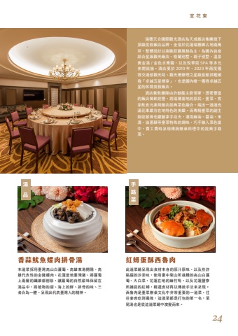 %u6b64%u9053%u83dc%u991a%u5448%u73fe%u51fa%u98df%u6750%u672c%u8eab%u7684%u539f%u6c41%u539f%u5473%uff0c%u4ee5%u53ca%u4e9b%u8a31%u9ede%u7db4%u7684%u6c99%u8336%u5473%uff0c%u4f7f%u7528%u81fa%u4e2d%u68a8%u5c71%u6240%u683d%u7a2e%u7684%u9ad8%u5c71%u767d%u863f%u8514%u3001%u5927%u767d%u83dc%uff0c%u82b1%u84ee%u5728%u5730%u7684%u9ebb%u7af9%u7b4d%uff0c%u4ee5%u53ca%u82b1%u84ee%u9e7d%u5bee%u6240%u6355%u6349%u7684%u7d05%u87f3%uff0c%u7cbe%u9078%u98df%u6750%u518d%u4ee5%u50b3%u7d71%u624b%u6cd5%u4f86%u5448%u73fe%u3002%u897f%u9b6f%u8089%u662f%u81fa%u83dc%u8fa6%u684c%u6587%u5316%u4e2d%u975e%u5e38%u91cd%u8981%u7684%u4e00%u9053%u83dc%uff0c%u5f80%u5f80%u5bb4%u5e2d%u5403%u5230%u6700%u5f8c%uff0c%u9019%u9053%u83dc%u90fd%u662f%u6253%u5305%u7684%u7b2c%u4e00%u540d%uff0c%u83dc%u5c3e%u6e6f%u4e5f%u662f%u5f9e%u9019%u9053%u83dc%u991a%u4e2d%u6f14%u8b8a%u800c%u4f86%u3002%u672c%u9053%u83dc%u63a1%u7528%u81fa%u7063%u9ad8%u5c71%u767d%u863f%u8514%u3001%u9ad8%u96c4%u6771%u6e2f%u958b%u967d%u3001%u9ad8%u96c4%u4ee3%u8868%u6027%u7684%u91d1%u9322%u87ba%u8089%u3001%u82b1%u84ee%u7576%u5730%u81fa%u7063%u8c6c%u3001%u5c07%u863f%u8514%u4e0a%u5169%u5c64%u7684%u7e96%u7dad%u90fd%u524a%u9664%uff0c%u8b93%u863f%u8514%u7684%u81ea%u7136%u751c%u5473%u4fdd%u7559%u5728%u6e6f%u54c1%u4e2d%uff0c%u5c07%u690d%u7269%u7684%u751c%u3001%u6d77%u4e0a%u7684%u9bae%u3001%u6392%u9aa8%u7684%u5473%u3001%u4e09%u8005%u5408%u70ba%u4e00%u9ad4%uff0c%u5448%u73fe%u51fa%u4ee3%u8868%u81fa%u7063%u4eba%u7684%u7cbe%u795e%u3002 %u745e%u7a57%u5929%u5408%u570b%u969b%u89c0%u5149%u9152%u5e97%u70ba%u5929%u6210%u98ef%u5e97%u96c6%u5718%u65d7%u4e0b%u9802%u7d1a%u5ea6%u5047%u98ef%u5e97%u54c1%u724c%uff0c%u5750%u843d%u65bc%u82b1%u84ee%u745e%u7a57%u9109%u5360%u5730%u5169%u842c%u576a%uff0c%u6574%u9ad4%u8a2d%u8a08%u4ee5%u5357%u6b50%u838a%u5712%u98a8%u683c%u70ba%u4e3b%uff0c%u70ba%u570b%u5167%u9996%u5ea7%u7d50%u5408%u661f%u7d1a%u89c0%u5149%u98ef%u5e97%u3001%u683c%u862d%u5225%u5885%u3001%u89aa%u5b50%u5225%u5885%u3001%u6eab%u6cc9%u9ec3%u91d1%u6e6f / %u91d1%u8272%u6c34%u6a02%u5712%uff0c%u4ee5%u53ca%u6085%u83ef%u838a SPA %u7b49%u591a%u5143%u4f11%u9592%u8a2d%u65bd%u3002%u9152%u5e97%u66f4%u65bc 2019 %u5e74%u30012023 %u5e74%u5169%u5ea6%u7372%u5f97%u4ea4%u901a%u90e8%u89c0%u5149%u5c40%u3001%u89c0%u5149%u7f72%u8fa6%u7406%u4e4b%u661f%u7d1a%u65c5%u9928%u8a55%u9451%u9812%u767c%u300c%u5353%u8d8a%u4e94%u661f%u6a19%u7ae0%u300d%uff0c%u4e5f%u662f%u570b%u5167%u552f%u4e00%u7372%u5f97%u5353%u8d8a%u4e94%u661f%u7684%u4f11%u9592%u5ea6%u5047%u98ef%u5e97%u3002 %u9152%u5e97%u9910%u98f2%u5718%u968a%u7531%u8a31%u5275%u9f8d%u4e3b%u5eda%u9818%u8ecd%uff0c%u6191%u8457%u8c50%u5bcc%u7684%u98ef%u5e97%u9910%u98f2%u7d93%u6b77%uff0c%u5c07%u745e%u7a57%u7576%u5730%u7684%u539f%u6c11%u3001%u81fa%u83dc%u3001%u5ba2%u5bb6%u98f2%u98df%u5143%u7d20%u8207%u98ef%u5e97%u7d93%u5178%u83dc%u8272%u878d%u5408%uff0c%u7aef%u51fa%u4e00%u9053%u9053%u5145%u6eff%u82b1%u6771%u7e31%u8c37%u5728%u5730%u7279%u8272%u7684%u7f8e%u994c%u3002%u800c%u5c08%u7cbe%u81fa%u83dc%u7684%u526f%u4e3b%u5eda%u838a%u90c1%u5049%u4e5f%u737b%u85dd%u62ff%u624b%u529f%u592b%uff0c%u904b%u7528%u9ebb%u6cb9%u3001%u91ac%u6cb9%u3001%u7c73%u9152%u3001%u6cb9%u8525%u9165%u7b49%u81fa%u83dc%u7279%u6b8a%u7684%u8abf%u5473%uff0c%u5de7%u624b%u878d%u5165%u83dc%u8272%u7576%u4e2d%uff0c%u8cbb%u5de5%u8cbb%u6642%u5448%u73fe%u50b3%u7d71%u8fa6%u684c%u6599%u7406%u4e2d%u7684%u7d93%u5178%u624b%u8def%u83dc%u3002%u9999%u849c%u9b77%u9b5a%u87ba%u8089%u6392%u9aa8%u6e6f %u7d05%u87f3%u86cb%u9165%u897f%u9b6f%u8089%u5b9c%u82b1%u6771%u6e6f%u624b%u8def%u83dc%u54c124