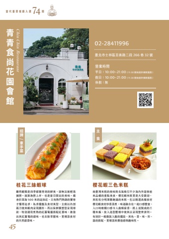 %u5357%u81fa%u7063%u7c73%u7cd5%u7684%u7f8e%u5473%u8207%u540d%u6c23%u5438%u5f15%u4e0d%u5c11%u6d77%u5167%u5916%u904a%u5ba2%u524d%u4f86%u54c1%u5690%u7684%u91cd%u9ede%u7f8e%u98df%uff0c%u6afb%u82b1%u8766%u7c73%u7cd5%u66f4%u662f%u5927%u53d7%u6b61%u8fce%uff0c%u5176%u7c92%u7c92%u5206%u660e%u6e3e%u5713%u98fd%u6eff%u7684%u7c73%u7cd5%uff0c%u4f50%u4ee5%u7cbe%u9078%u9ad8%u6a94%u98df%u6750%u6afb%u82b1%u8766%u98df%u6750%u7092%u9999%u84b8%u716e%uff0c%u5473%u9053%u878d%u5408%u5728%u4e00%u8d77%u53e3%u611f%u8c50%u5bcc%uff0c%u5165%u53e3%u6642%u8edf%u7cef%u53e3%u611f%u4ee4%u4eba%u9f52%u9830%u7559%u9999%uff0c%u5c07%u4e0a%u8ff0%u88fd%u6210%u7684%u4e09%u7a2e%u7c73%u98ef%uff0c%u653e%u5165%u9020%u578b%u58d3%u6a21%u4e2d%u4f7f%u5176%u4ee5%u5448%u73fe%u6574%u9f4a%u6392%u5217%u3002%u6709%u5225%u65bc%u4e00%u822c%u6563%u88dd%u5165%u76e4%u7684%u64fa%u8a2d%uff0c%u5176%u8272%u3001%u9999%u3001%u5473%u3001%u5f62%u3001%u5668%u7684%u642d%u914d%uff0c%u66f4%u589e%u6dfb%u5176%u50f9%u503c%u611f%u8207%u8da3%u5473%u6027%u3002%u96d6%u7136%u8766%u985e%u662f%u56db%u5b63%u90fd%u5617%u5f97%u5230%u7684%u9bae%u7f8e%uff0c%u537b%u7121%u6cd5%u88ab%u8f15%u6613%u6355%u6488%u3002%u5c31%u7b97%u6f01%u6488%u4e0a%u5cb8%uff0c%u4e5f%u662f%u7576%u65e5%u9650%u5b9a%u7684%u7f8e%u5473%u3002%u85cf%u8eab%u65bc%u6df1%u6d77 500 %u7c73%u7684%u9019%u62b9%u7d05%uff0c%u53ea%u6709%u719f%u9580%u719f%u8def%u7684%u9955%u5ba2%u624d%u61c2%u5f97%u8ffd%u6c42%uff0c%u70ba%u6c42%u64fa%u76e4%u53ca%u98df%u6750%u7f8e%u578b%uff0c%u4e3b%u5eda%u4ee5%u5167%u5256%u5169%u5200%u4f7f%u5176%u8766%u8089%u5448%u73fe%u5713%u5f62%u3001%u518d%u4ee5%u4fdd%u9bae%u819c%u5851%u578b%u5448%u73fe%u7403%u72c0%uff0c%u7279%u5225%u904b%u7528%u716e%u719f%u7684%u7d05%u863f%u8514%u91ac%u642d%u914d%u7d05%u8525%u5473%uff0c%u6fc0%u767c%u51fa%u5176%u7d05%u863f%u8514%u7684%u751c%u5473%uff0c%u4e5f%u53bb%u9664%u8349%u8165%u5473%uff0c%u66f4%u589e%u6dfb%u98df%u6750%u7684%u5929%u7136%u751c%u9999%u5473%u3002%u6842%u82b1%u4e09%u7d72%u8766%u7403 %u6afb%u82b1%u8766%u4e09%u8272%u7c73%u7cd5 Chin Chin Restaurant%u62db%u724c/%u62ff%u624b%u83dc%u4e3b%u98df%u9752%u9752%u98df%u5c1a%u82b1%u5712%u6703%u9928%u7576 %u4ee3 %u81fa %u83dc %u9910 %u5ef3 %u5165 %u9078 %u959302-28411996%u71df%u696d%u6642%u9593%u5e73%u65e5%uff1a10:00~21:00%uff0811:30 %u958b%u59cb%u63d0%u4f9b%u9910%u98f2%u670d%u52d9%uff09%u4f11%u5047%uff1a%u7121%u5047%u65e5%uff1a10:00~21:00%uff0811:30 %u958b%u59cb%u63d0%u4f9b%u9910%u98f2%u670d%u52d9%uff09%u81fa%u5317%u5e02%u58eb%u6797%u5340%u81f3%u5584%u8def%u4e8c%u6bb5 266 %u5df7 32 %u865f7445