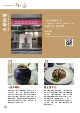 %u50b3%u7d71%u4e0a%u8fa6%u684c%u66f4%u5e38%u5403%u5230%u7d05%u87f3%u7c73%u7cd5%uff0c%u7d05%u87f3%u7c73%u7cd5%u662f%u628a%u7d05%u87f3%u84b8%u719f%u4e4b%u5f8c%u518d%u548c%u7cef%u7c73%u98ef%u4e00%u8d77%u64fa%u76e4%u3002%u4f46%u963f%u71e6%u5e2b%u7684%u9c3b%u9b5a%u9999%u7c73%u7cd5%uff0c%u662f%u5c07%u9c3b%u9b5a%u548c%u7cef%u7c73%u98ef%u4e00%u8d77%u62ff%u53bb%u84b8%uff0c%u8b93%u9c3b%u9b5a%u7684%u9bae%u5473%u548c%u7cef%u7c73%u98ef%u7684%u9999%u6c23%u76f8%u4e92%u878d%u5408%u3002%u7cef%u7c73 Q %u5f48%u53e3%u611f%u548c%u9c3b%u9b5a%u7684%u9bae%u7f8e%u53e3%u611f%u76f8%u8f14%u76f8%u6210%uff0c%u8b93%u4eba%u4e00%u53e3%u63a5%u4e00%u53e3%u3002%u5728%u7d93%u904e%u6cb9%u70b8%u5f8c%uff0c%u9c3b%u9b5a%u8868%u9762%u5448%u73fe%u51fa%u8a98%u4eba%u7684%u91d1%u9ec3%u8272%uff0c%u53e3%u611f%u8edf%u7cef%u3002%u5728%u7cef%u7c73%u4e2d%u52a0%u5165%u9c3b%u9b5a%u66f4%u8b93%u6574%u9053%u6599%u7406%u5145%u6eff%u6fc3%u90c1%u7684%u9b5a%u9999%u5473%u3002%u4f5b%u8df3%u7246%u5403%u8d77%u4f86%u6e6f%u6c41%u6fc3%u90c1%u9bae%u9e79%u5473%uff0c%u662f%u7531%u8c50%u5bcc%u3001%u73cd%u7a00%u7684%u6750%u6599%u6817%u5b50%u3001%u9b5a%u76ae%u3001%u5e72%u8c9d%u3001%u9b91%u9b5a%u69cb%u6210%uff0c%u8b93%u4eba%u611f%u5230%u6f8e%u6e43%u8c6a%u83ef%u3002%u4e0d%u540c%u6750%u6599%u5728%u84b8%u716e%u5f8c%u6563%u767c%u51fa%u9bae%u7f8e%u7684%u9e79%u9999%u5473%uff0c%u8b93%u4eba%u56de%u5473%u7121%u7aae%uff0c%u662f%u81fa%u7063%u7684%u4e00%u9053%u6975%u54c1%u7f8e%u98df%u3002%u963f%u71e6%u5e2b%u9019%u9053%u83dc%u662f%u6b63%u5b97%u4f5b%u8df3%u7246%uff0c%u6c11%u570b 45 %u5e74%u963f%u71e6%u5e2b%u7684%u53d4%u53d4%u5c31%u5df2%u7d93%u5728%u505a%u9019%u9053%u6599%u7406%uff0c%u7d93%u904e%u5e7e%u5341%u5e74%u7684%u6d17%u934a%uff0c%u4f5b%u8df3%u7246%u7684%u5473%u9053%u5df2%u7d93%u63a5%u8fd1%u5b8c%u7f8e%u3002%u4e00%u54c1%u4f5b%u8df3%u7246 %u9c3b%u9b5a%u9999%u7c73%u7cd5 Pan Toh Academy%u62db%u724c/%u62ff%u624b%u83dc%u4e3b%u98df%u8fa6%u684c%u5b78%u82d1%u7576 %u4ee3 %u81fa %u83dc %u9910 %u5ef3 %u5165 %u9078 %u959302-87910618%u71df%u696d%u6642%u9593%u9810%u7d04%u5236%u81fa%u5317%u5e02%u5167%u6e56%u5340%u884c%u5584%u8def 50 %u865f7467